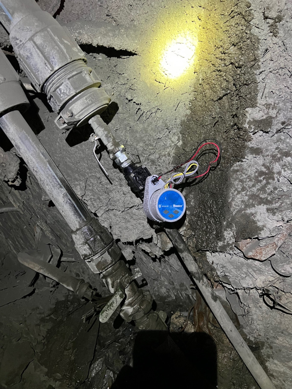 One of the breakthrough enhancements was the integration of a Bluetooth-enabled Hunter Node solenoid, controlled via an iPad. “We programmed it to run 20 minutes every two hours,” David said. “It kept the dirt wet without washing away the roads.” It also reduced the exposure of workers to hazardous zones by eliminating the need to manually adjust or start the system post-blast.