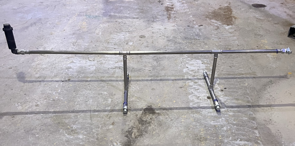 A newly fabricated Version 2 of the Stope Soaker, showcasing a more robust and stable design ready for underground deployment.