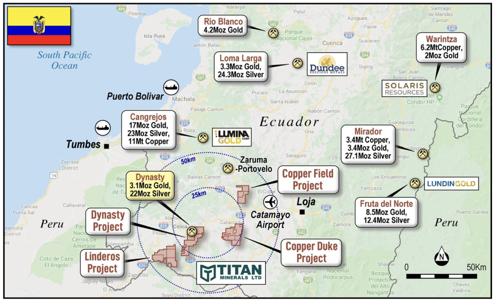 Beyond gold, Titan’s Linderos Copper Project is quietly shaping into a serious Tier 1 porphyry prospect. Partnered with Hancock Prospecting’s subsidiary Hanrine, the JV deal allows Hanrine to earn up to 80% interest by spending US$120 million. Titan is free-carried to decision-to-mine.
